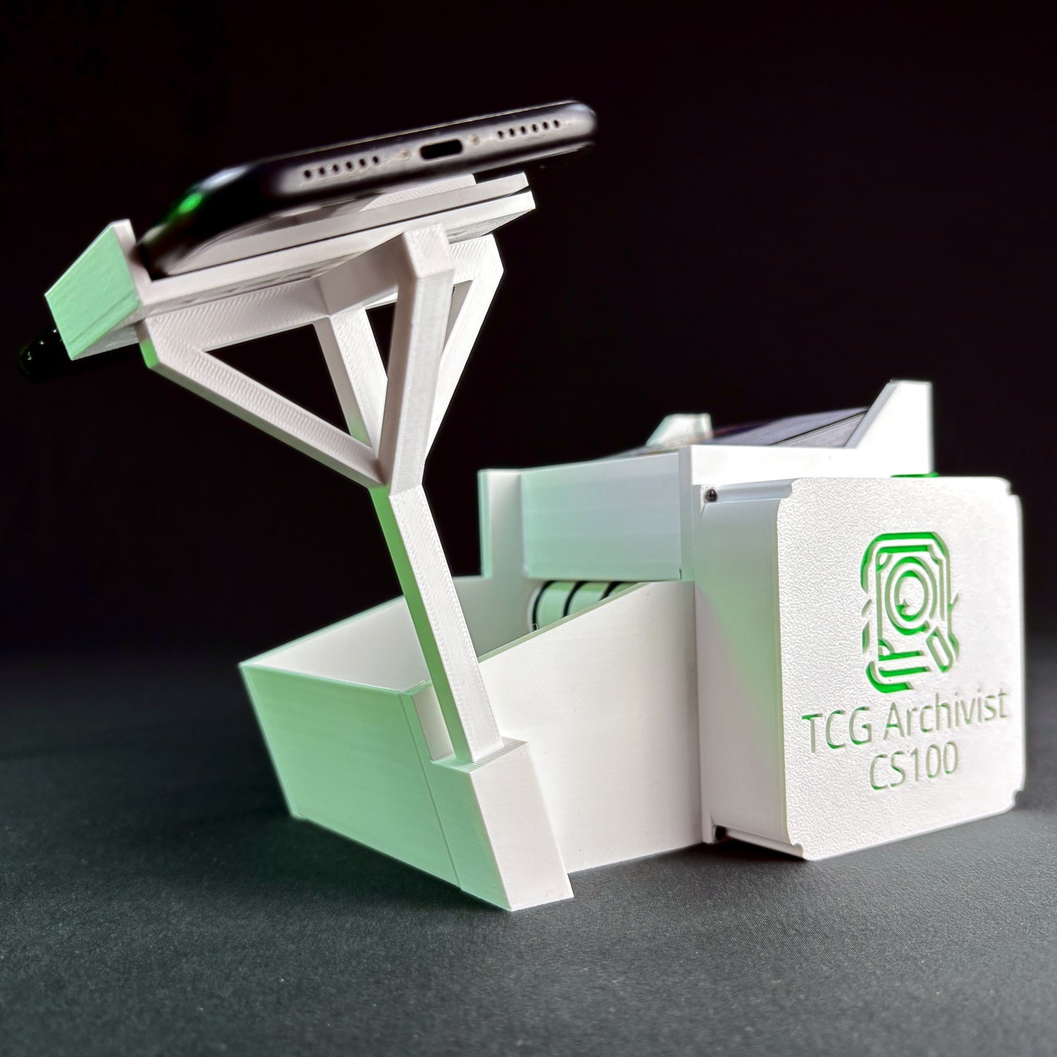 The CS100 is awesome for cataloging cards. Super easy and has a straightforward design. It's really the only product priced for everyday hobbyists and not prohibitively expensive. The versatility is great – you can adjust the setup in unexpected ways, and it still works perfectly. A great feature is setting a stack of cards in and letting it run, so sorting doesn't need 100% of your attention. Perfect as a side or background task. Plus, the company is super communicative and active in the community.